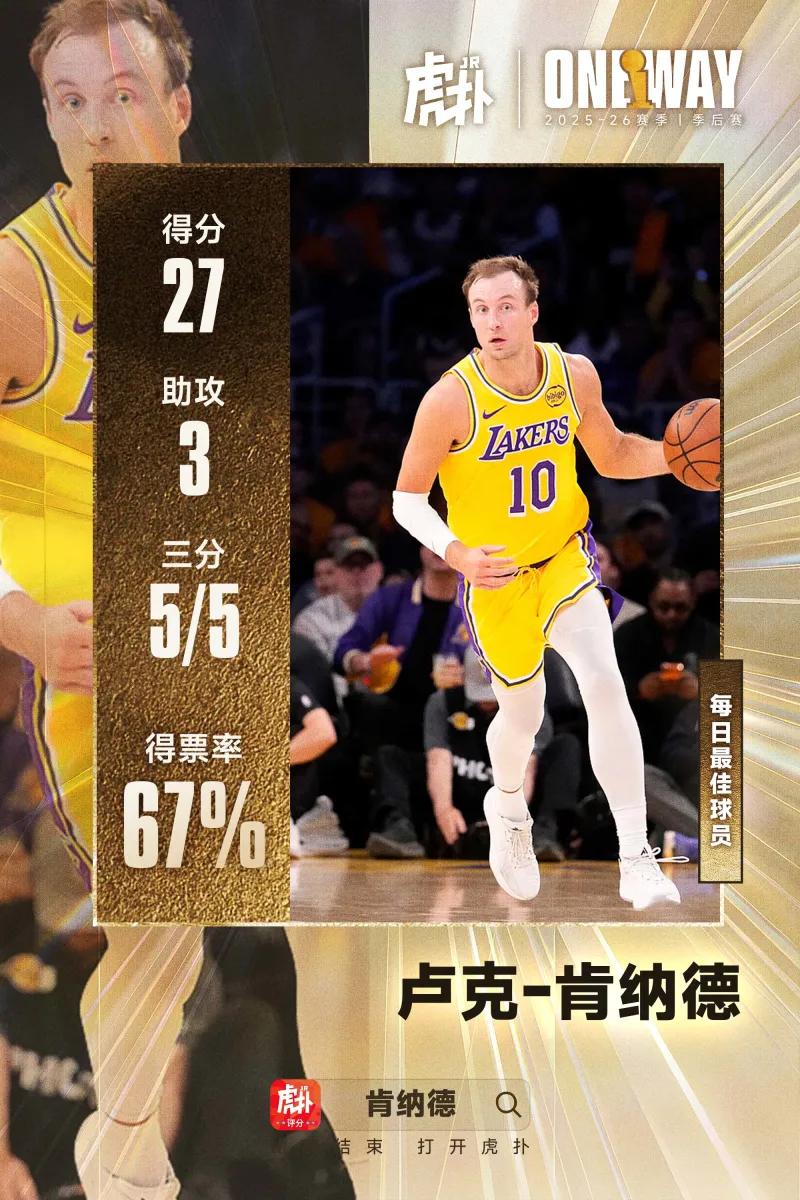 神兵天降!肯纳德以67%得票率当选季后赛首日JRs评选最佳球员